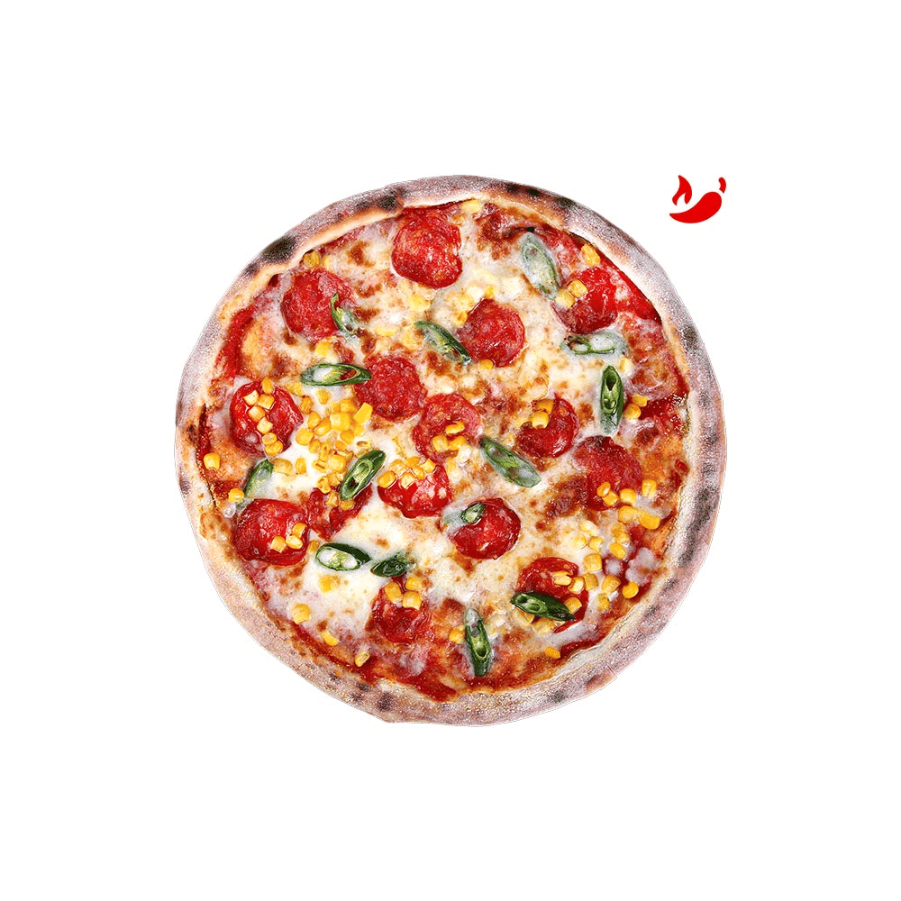 Она такая острая, что матерятся даже "суровые" челябинские парни. Пикантная пицца с острыми салями, жгучим перцем, кукурузой и моцареллой на нежном итальянском тесте. Вес блюда указан с погрешностью +/- 7%