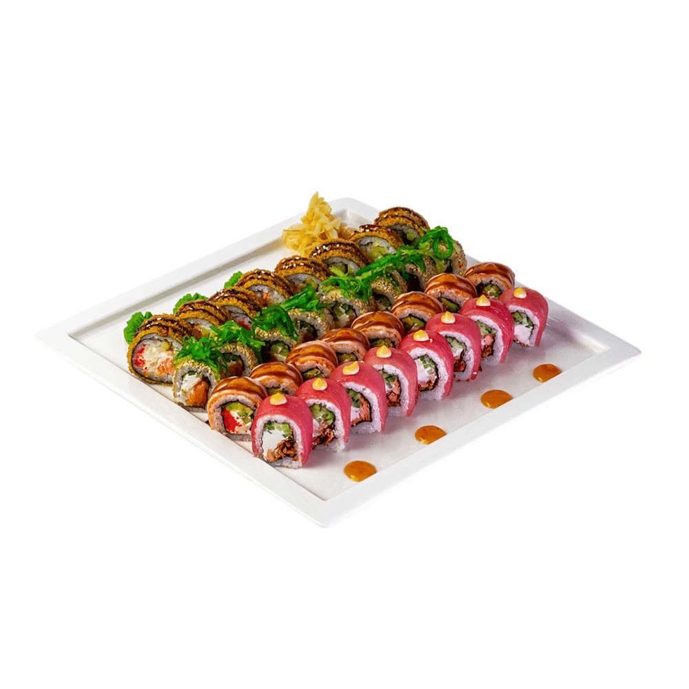 Un set armonios, plin de savoare și echilibru. Flambat, crocant, proaspăt – tot ce înseamnă umami într-o singură tavă. Set de 4 rolluri (Somon cu flacără, Sakura Verde,Ton și somon, Tempura cu somon)
