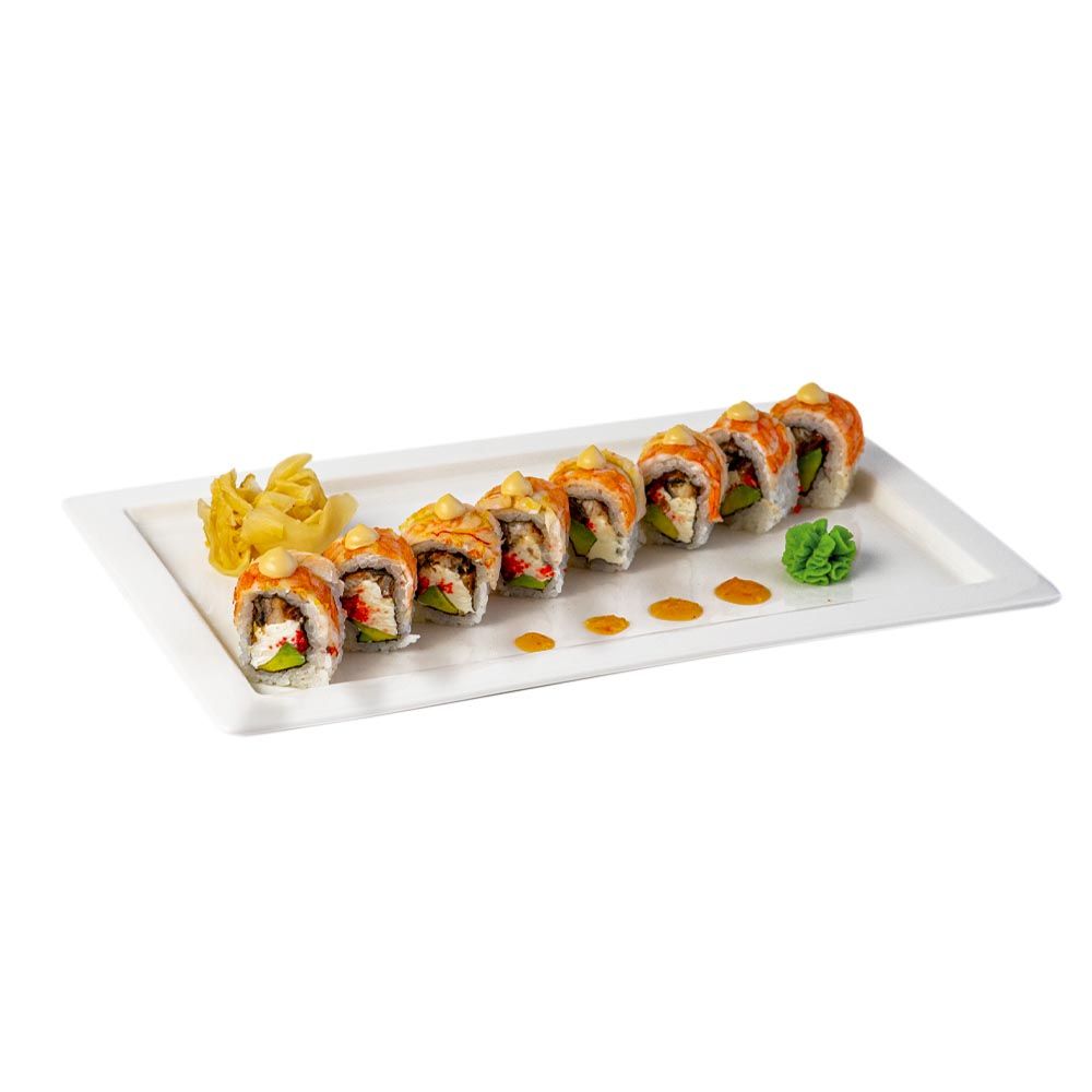 Roll cu tipar, creveți, avocado, cremă de brânză și icre masago