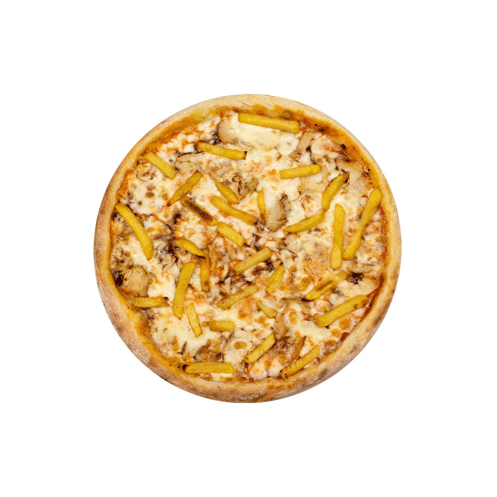 COPIII O ADORĂ! Pizza cu piept de pui și cartofi pai. Combinația a trei sosuri secrete oferă o aromă specială preparatului. Greutatea felului este indicată cu o eroare de +/- 7%.