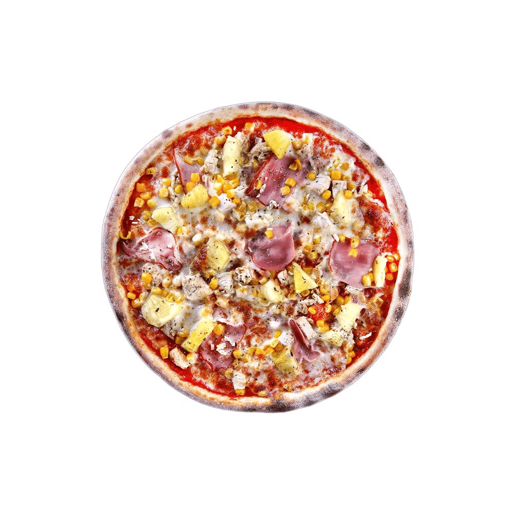 Vine iepurașul care bate la ușă, ne aduce super pizza! Piept de pui fraged, ananas, șuncă suculentă, mozzarella, porumb dulce pe aluat italian crocant. Greutatea este indicată cu o eroare de +/- 7%.